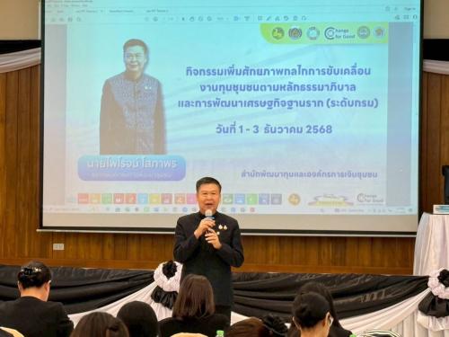 โดยวันที่ 1 ธันวาคม 2568 นายไพโรจน์ โสภาพร รองอธิบดีกรมการพัฒนาชุมชน เป็นประธานเปิดโครงการ “เสริมสร้างศักยภาพกลไกการขับเคลื่อนงานทุนชุมชน กิจกรรมที่ 1 เพิ่มศักยภาพกลไกการขับเคลื่อนงานทุนชุมชนตามหลักธรรมาภิบาลและการพัฒนาเศรษฐกิจฐานราก (ระดับกรม)” โดยมีวัตถุประสงค์เพื่อเพิ่มศักยภาพเจ้าหน้าที่และคณะกรรมการกองทุนชุมชนให้มีความรู้ความเข้าใจในการขับเคลื่อนงานชุมชนขับเคลื่อนเศรษฐกิจฐานรากรวมถึงการส่งเสริมประชาชนเข้าถึงแหล่งทุน ที่มีอยู่ในชุมชนเพื่อนำเงินทุนไปประกอบอาชีพให้เกิดรายได้และเพื่อให้เจ้าหน้าที่และคณะกรรมการกองทุนชุมชนสามารถถ่ายทอดองค์ความรู้งานทุนชุมชนขับเคลื่อนเศรษฐกิจฐานรากได้อย่างมีประสิทธิภาพ